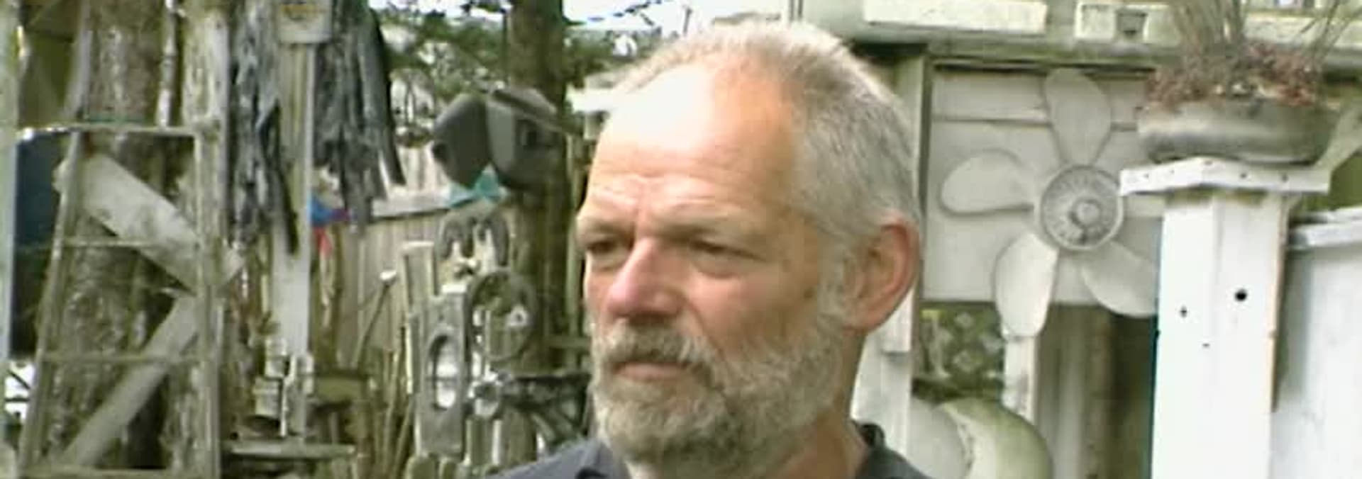 A retired engineer builds a full size operating rail road in his backyard, and a California artist works non-stop expanding her home and yard with her creations.