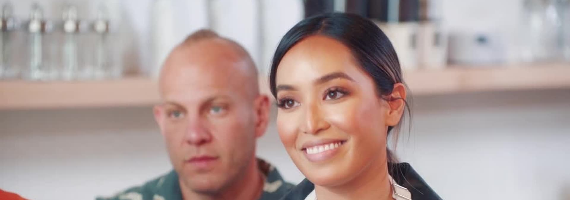 This week, the remaining six contestants split into teams to take on a live TV challenge where they will sell kitchen products.