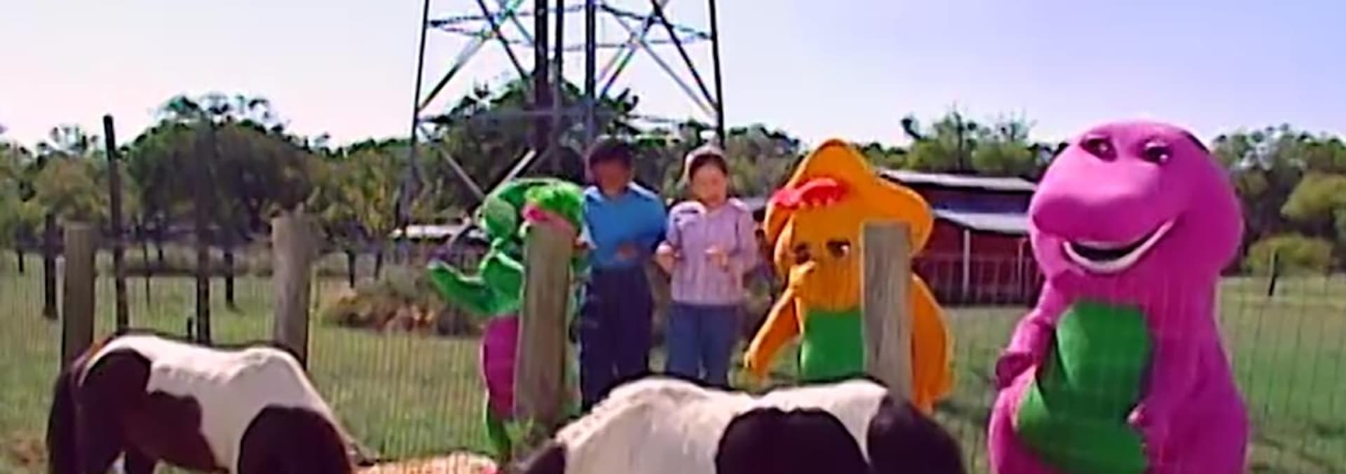 Barney takes friends to a farm for fresh fruits, pony rides, baby animals, a barn dance, and farm appreciation.