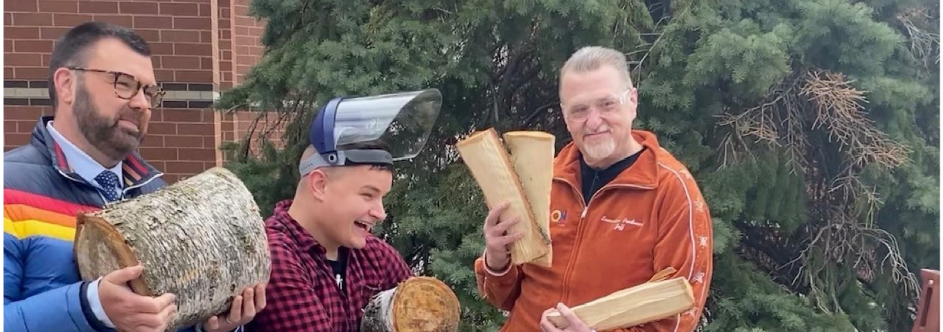 Jason, Exec. Producer Jeff & Producer Bjorn do their best to imitate TikTok star, Thoren Bradley, by attempting to chop wood.