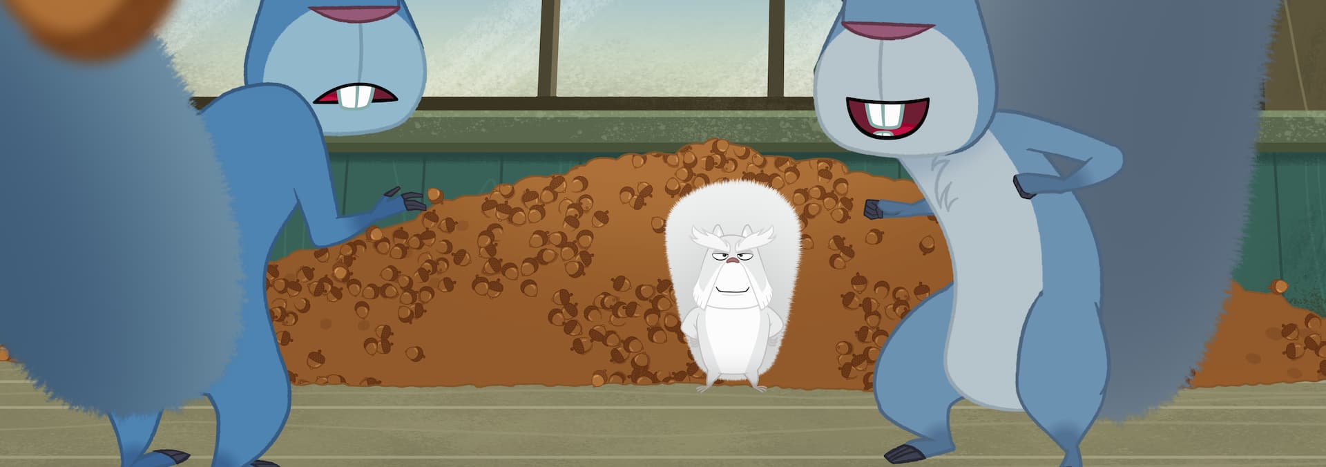 McSquizzy’s city cousin Roger visits Camp Wild and mockingly declares it to be nowhere near as wild as the city. / Boog shows Elliots an old calendar.