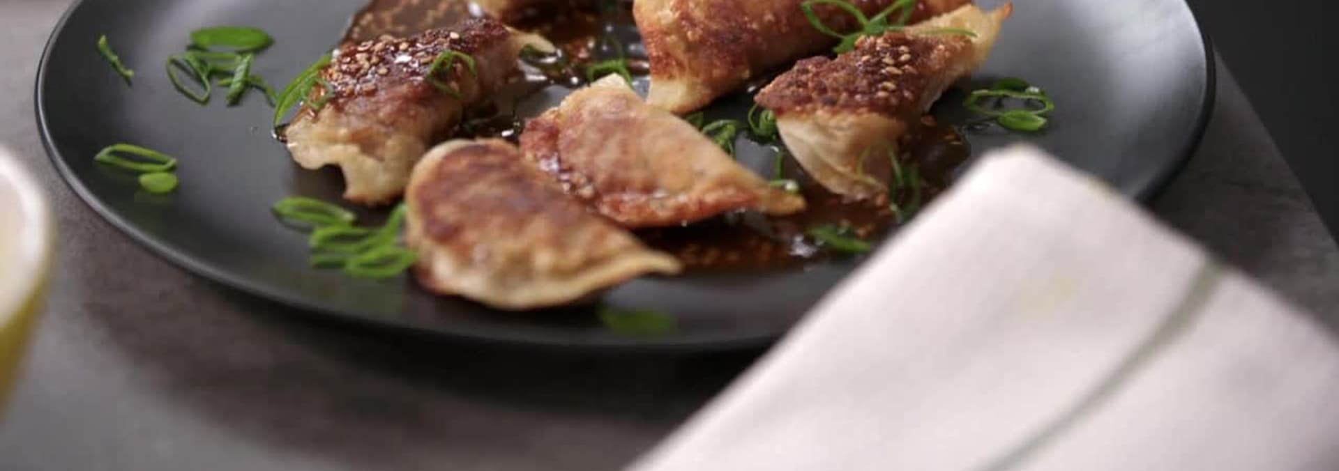 Bren cooks up vegan dumplings with ginger tamarind sauce and a roasted root vegetable plate with sweet potato puree and beetroot meringue.