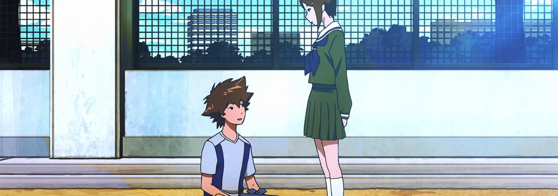 Taichi was somehow able to drive back the Kuwagamon by borrowing Agumon's strength, however, Odaiba suffered severe damage. He starts to worry about the negative public reactions towards Digimon.
