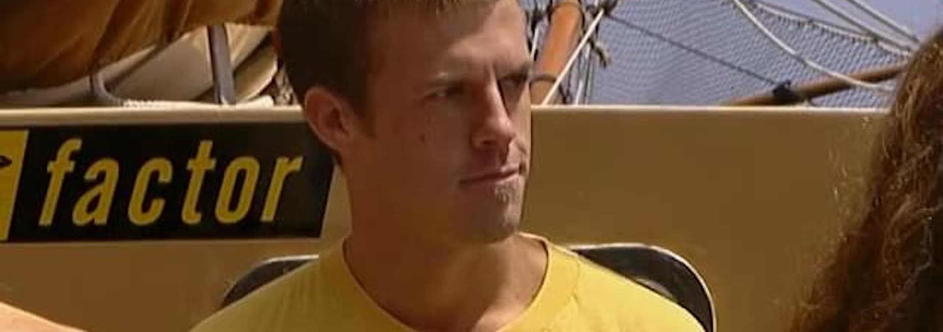 In this stunt the contestant will be in a 10' dingy that is being towed behind a 95' schooner sail boat by a 20' x 5' cargo net which is attached to the upper back end or the tail of the schooner. In this stunt the contestants will be standing on a plank that is positioned off the side of a schooner sail boat that is approx. 8' above the water. Contestants are seated around a traditional Thanksgiving dinner table. In this stunt the contestant will start on a platform that is attached to the port side of a schooner sail boat approx. 8' above the water.