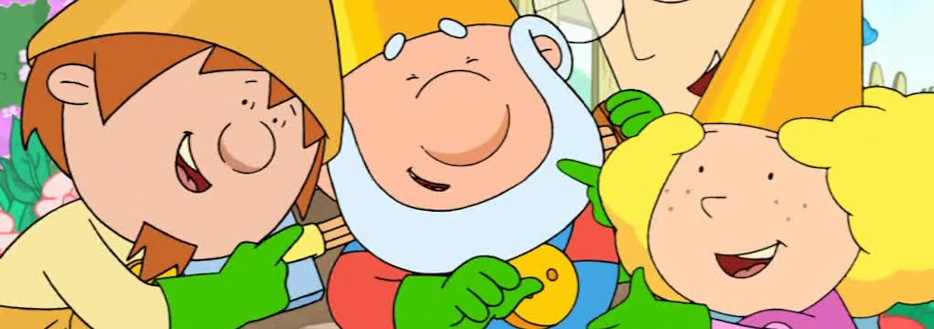 The Gnomes are busy repairing, oiling and polishing their lawn mowers ready for Meadow Mow Day. For tomorrow is the first day of spring and as usual they will celebrate it with the first cut of the meadow grasses and a performance of the Chief Gnome's 'Trumpet Hat Solo'. But when the big day arrives, the Gnomes they awake to discover a blanket of snow on the ground. Instead of cancelling the festivities, Gordon suggests they use the mowers as snow ploughs to clear the ground and make snow-Gnomes.