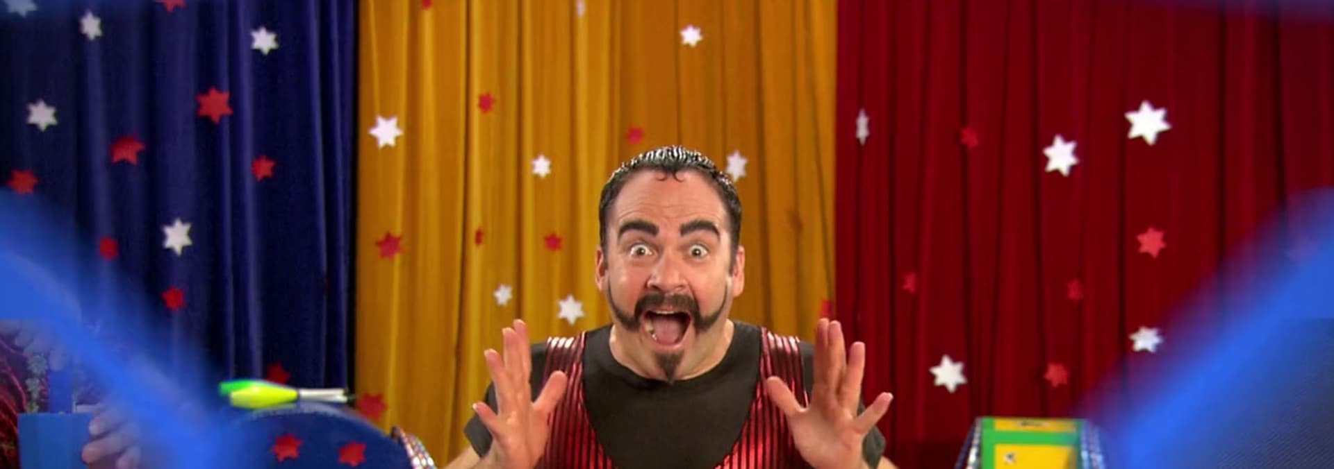 The circus artists are having a tea party when they hear a noise, it is Genevieve doing the splits! Missy, Enrique and Sampson are stunned by Genevieve's gymnastic tricks and decide to try their own.