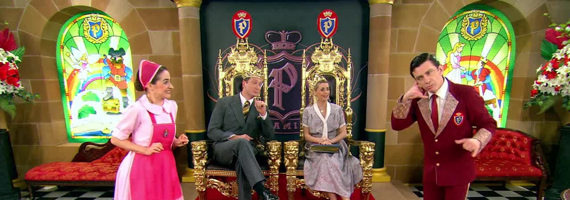 King John tries James’ special toothpaste with hilarious results! Once the royal duties are complete, the King and Queen adjourn to the royal library to find out what today’s story is inside the Paramithi Storybook. First they try to guess the story from the clues that are on the library table. There’s a tailor’s measuring tape, a pretend dead fly and the number seven. The story is The Brave Little Tailor, a tale originating from Germany. Genevieve and James produce the tale for the people of Paramithi with great dancing, music, costumes and props. The show fits like a glove!