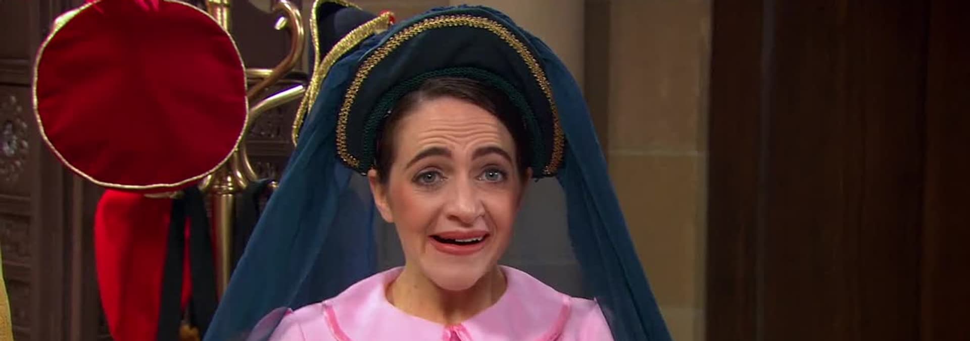 King John tries James’ skin cream with hilarious results! Then it’s off to the royal library to find out what today’s story is inside the Paramithi Storybook. It is The Princess and the Frog! After the Queen reads the tale, she suggests that it’s turned into a performance at the Paramithi theatre. Genevieve makes sure that the costumes and set are ready, while James organises the cast. Carlos plays the frog while Bernadette plays the Princess. It’s a r-r-r-r-r-riveting show!