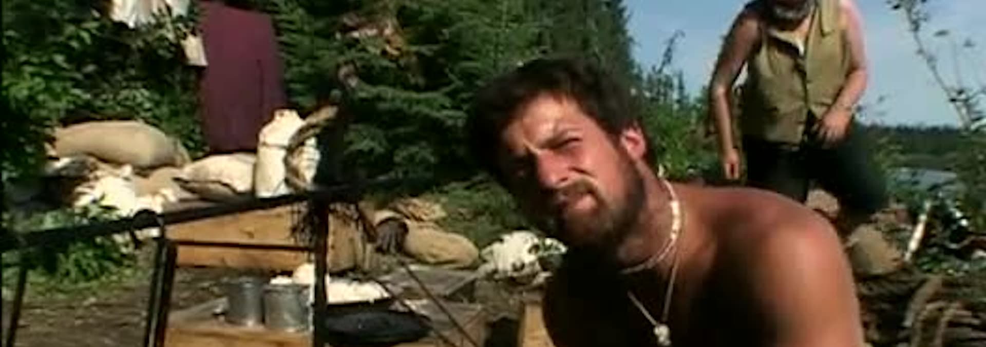 In this five part "living history" series about eight "average people" (7 men and one women) who volunteer to relive an adventure. The epic 1200 kilometer journey by the Hudson's Bay Company fur traders of 1840s from Winnipeg, to the Hudson Bay. They undertake this grueling and difficult journey through the heart of the Canadian wilderness in a historically accurate York Boat. Rowing 12 to 14 hours a day, carrying 180 lb. packs, shooting the rapids, and covering over 1200 kilometers, the trip will take eight to twelve weeks. In Episode 3 "The Great Portage" the crew leaves the security of Norway House, as the York boat sets out into the northern wilderness. They fight their way over barricades of beaver dams and drag the boat through the leech-filled sloughs of the Echimamish River before reaching the arduous 1600-meter Robinson Portage. The spirit of the group cracks under the intensity of the portage as the good weather turns to a torrential rain.