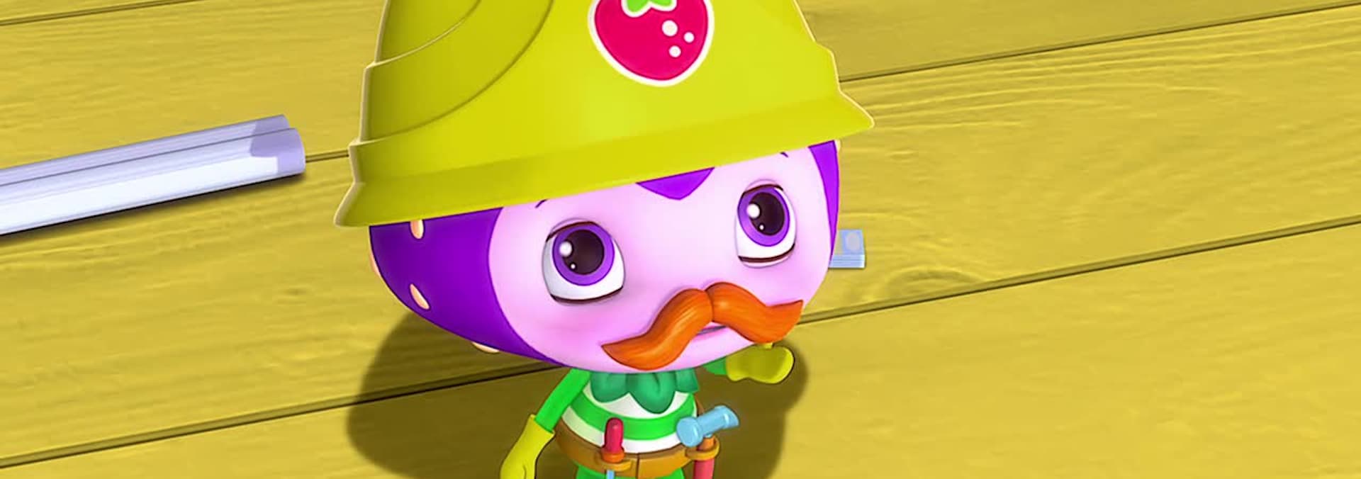 Strawberry's new produce marketplace goes under construction. Strawberry is so grateful to her girlfriends for helping her with a new bedroom atop the marketplace, that she accommodates all their ideas and neglects to include her own!