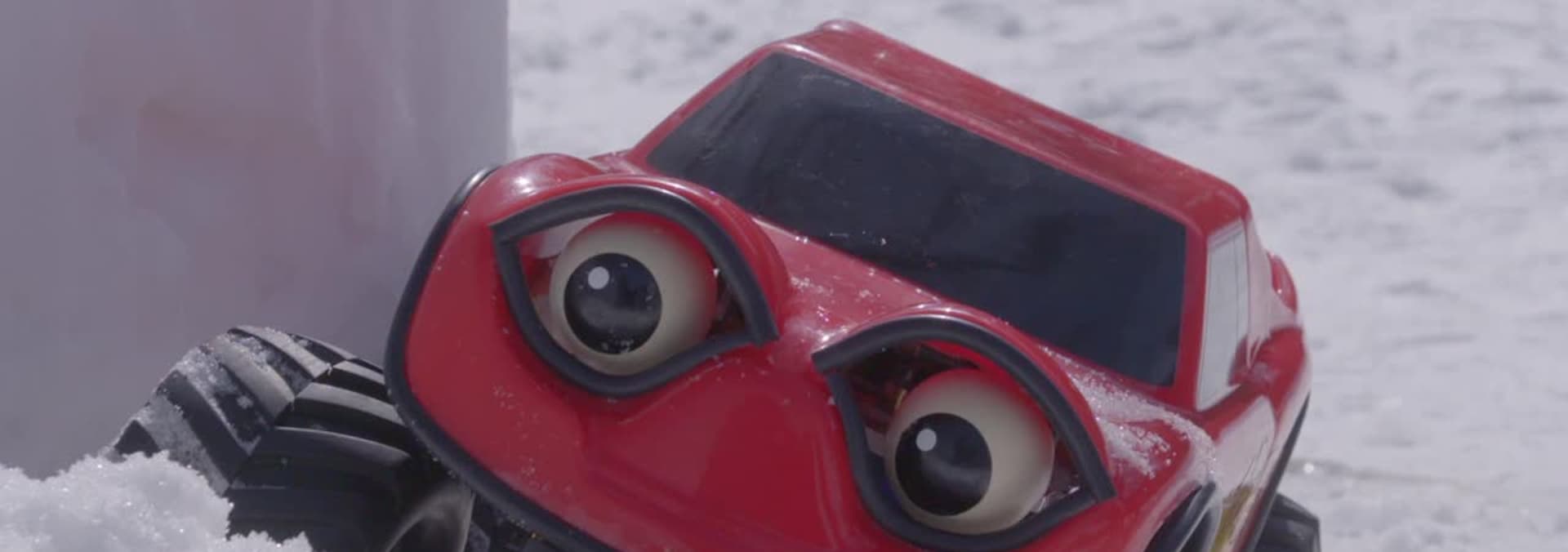 Zack has locked himself out of his snow fort, because there’s no door. He decides to dig through the snow and make an arch to drive in.