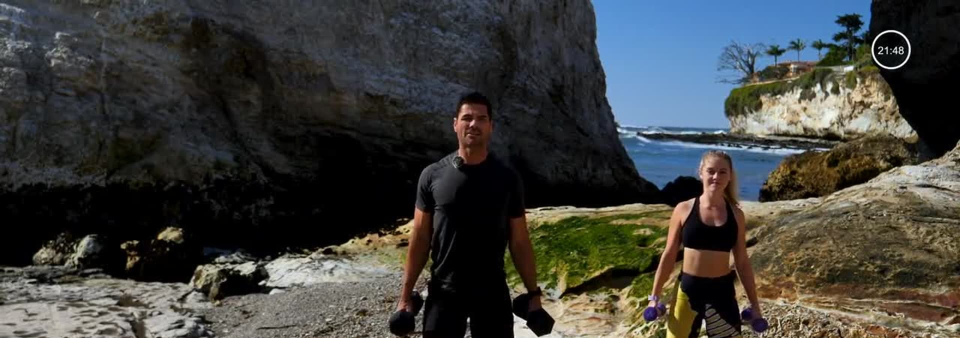 The dynamic duo is back for another total body workout. This routine incorporates weights to help boost your metabolism and speed up fat loss as you tone your entire body.