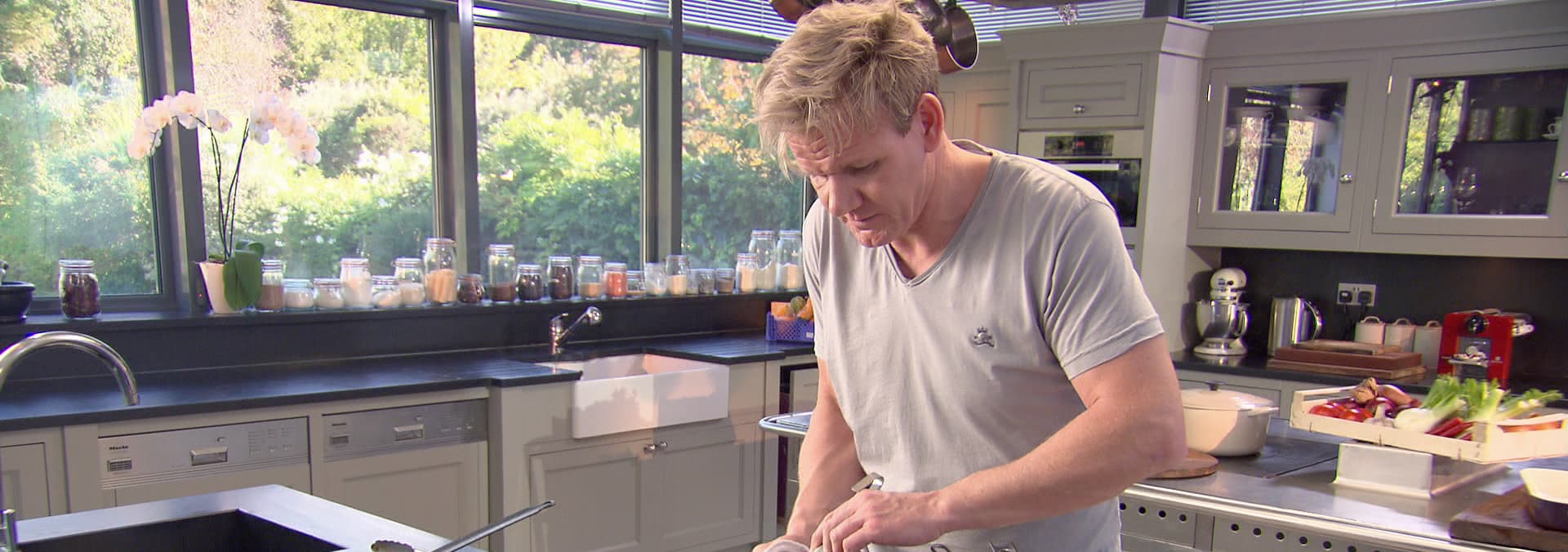 Tonight Gordon turns his focus to home baking. Recipes include his flavour-packed olive, tomato and rosemary focaccia, quick flatbreads with lemon, thyme and ricotta and a spectacular sponge with fresh ginger.