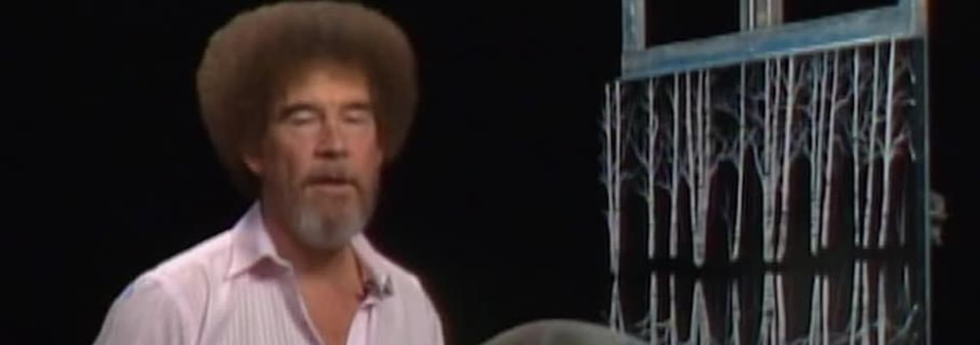 An incredibly unique Bob Ross painting -- delight in the effects of white and black gesso, discover a birch tree forest perfectly mirrored in the cold stillness of winter.