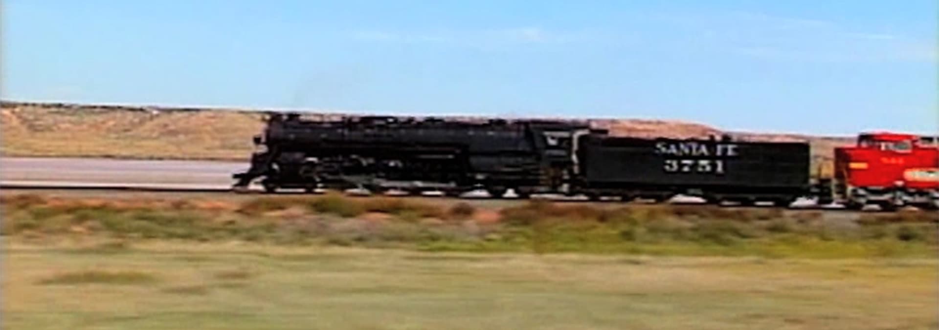 Santa Fe's mighty steam locomotive 3751 returns to the rails, making a classic run from Los Angeles to Chicago and back. Each segment of the eighteen-day journey is depicted.