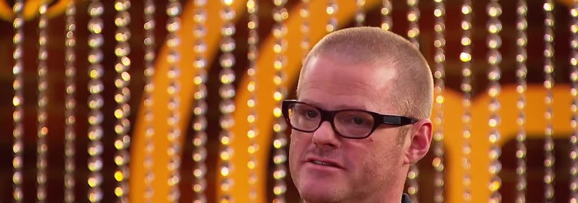 Guest chef Heston Blumenthal introduces the Invention test and presents cloches which hold an ingredient. Whatever is sitting under a second cloche is the other ingredient that they must use.