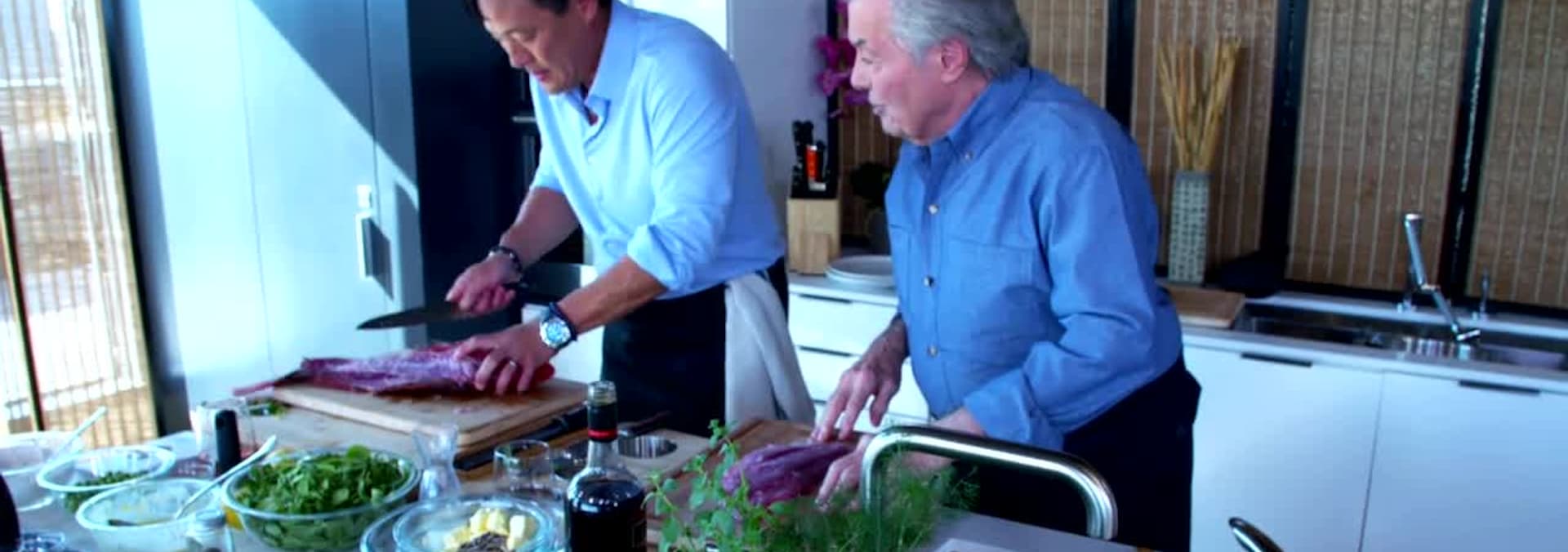 Chef Jacques Pepin joins Ming in the kitchen for a cook-a-thon in honor of their dear friend Anthony Bourdain. In a real-time 30-minute cook-off, the chefs go head-to-head to make some incredible dishes, Iron Chef style.