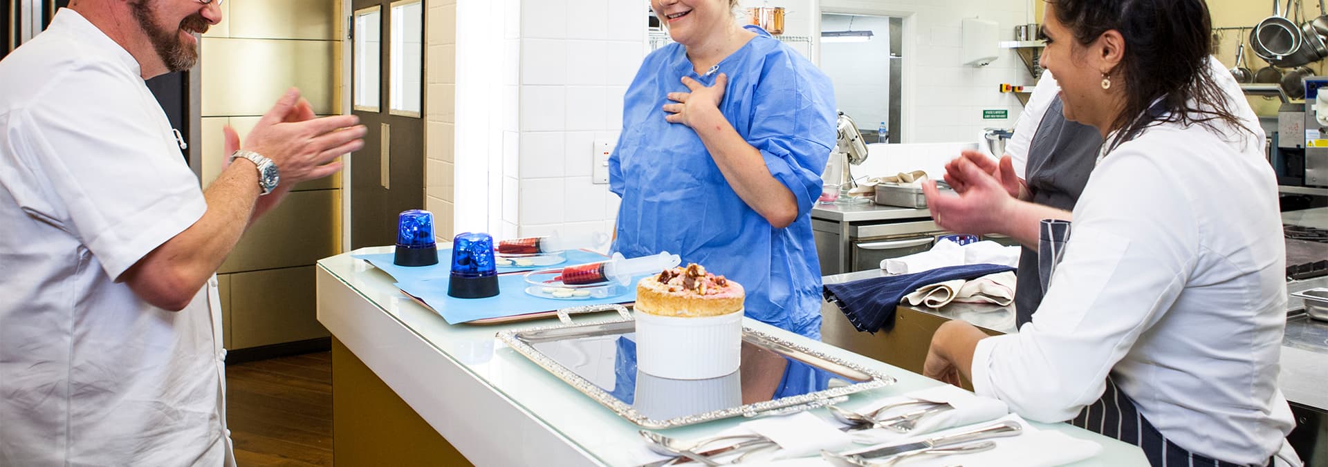 With one dish left to impress the veteran judge, the chefs cook their desserts. Marianne is looking to raise a smile with her 'carry on' themed dessert, complete with surprise presentation.