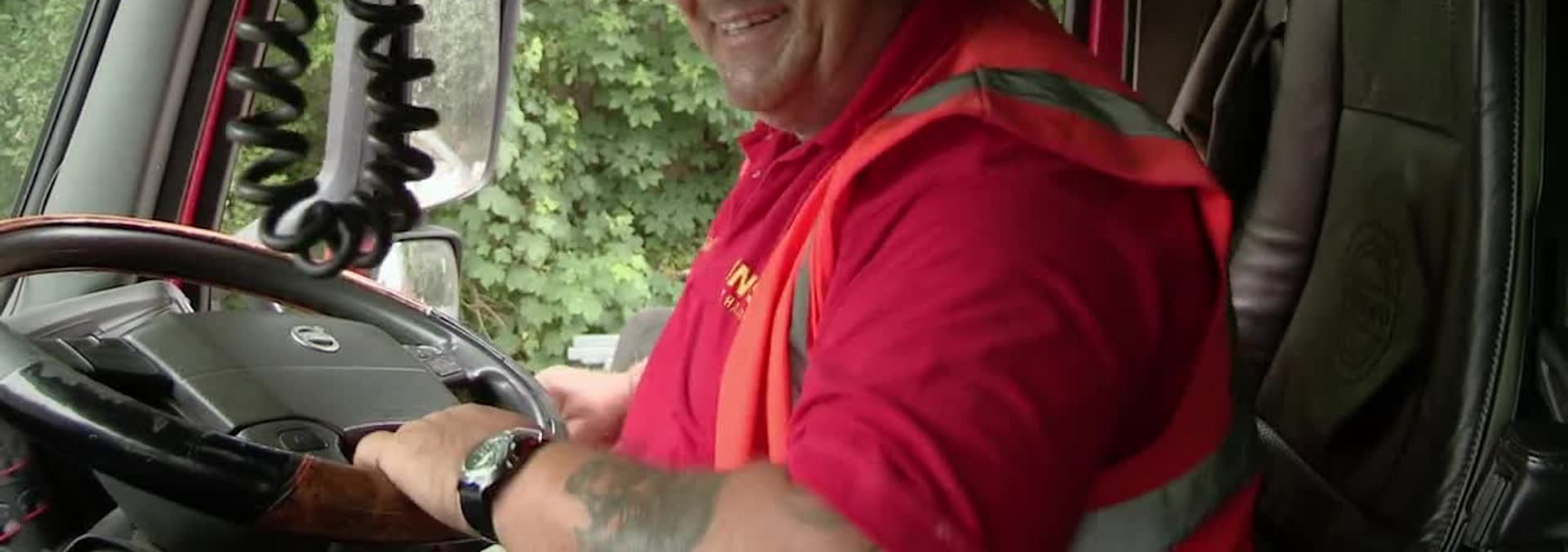 Heavy haulage driver Tom leads a convoy of three Giant Dumper Trucks, each weighing 77 tonnes and worth a million pounds, on an epic 680km journey from Somerset to Derbyshire.