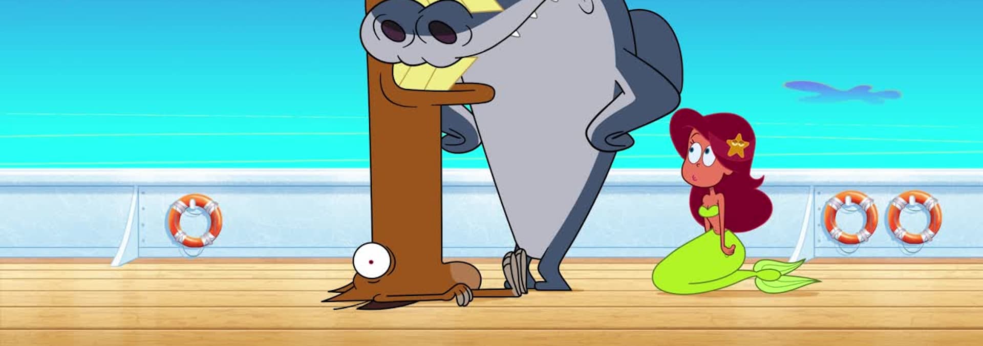 During a fight, Zig and Sharko tumble into a lifeboat. The lifeboat breaks off from the ship and falls into the water. Before they know it, they’re adrift in the ocean! Can they overcome past differences to survive… and get back on the cruise boat? | Our friends reminisce about the time they averted a shipwreck. Sharko, of course, claims that he was the hero of the rescue effort… But it seems that no one can agree on exactly what happened and everyone claims to be the hero of the day. | When a terrible storm hits the cruise ship, Marina braves the elements to save the passengers and Sharko is seasick. Zig takes advantage of the shark’s weakness to get close to the mermaid… till the moment where they both have to team up to save her!