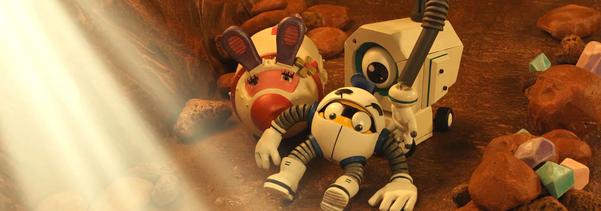 Cosmo dreams about Space Girl during Poya's space lesson./Poya must become friends with two reflection robots after getting stuck in a moonquake.
