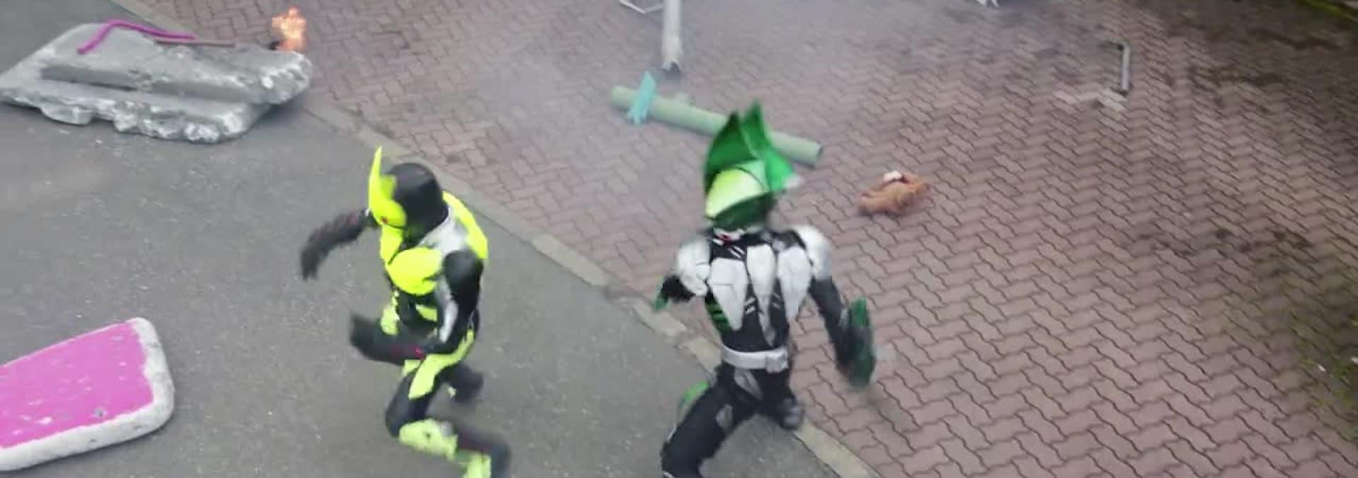 At the end of the battle with Kamen Rider Ikazuchi, A.I.M.S. determines the MetsubouJinrai.net hideout is in the vicinity of Daybreak Town