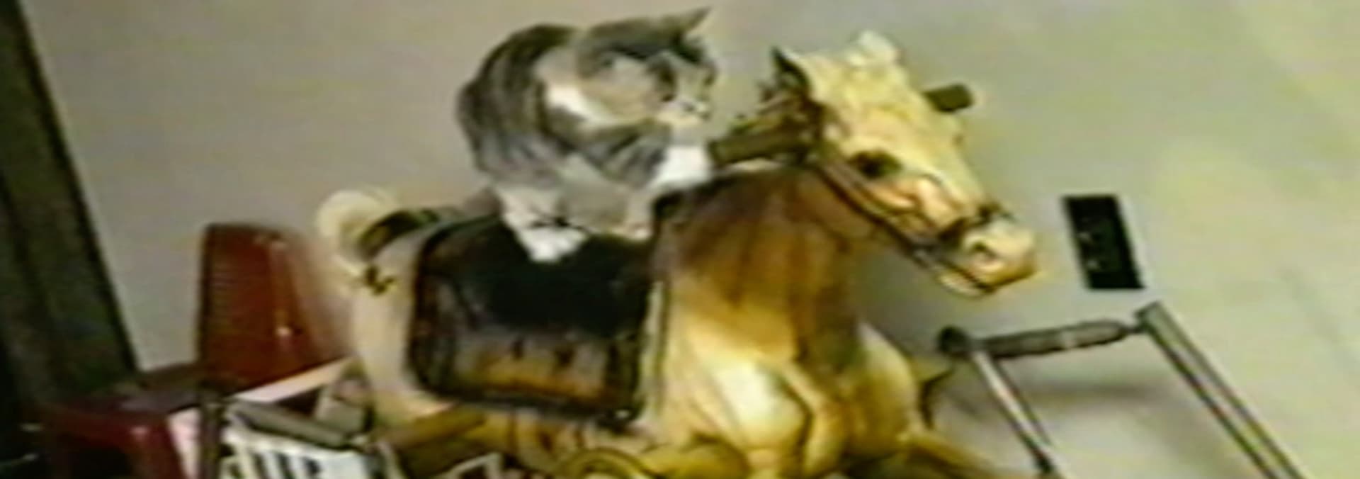 Squirrel plays at home with his stuffed toy, the moose; Millie the dog dancing on her tush; cat chases the toy race cars around the track