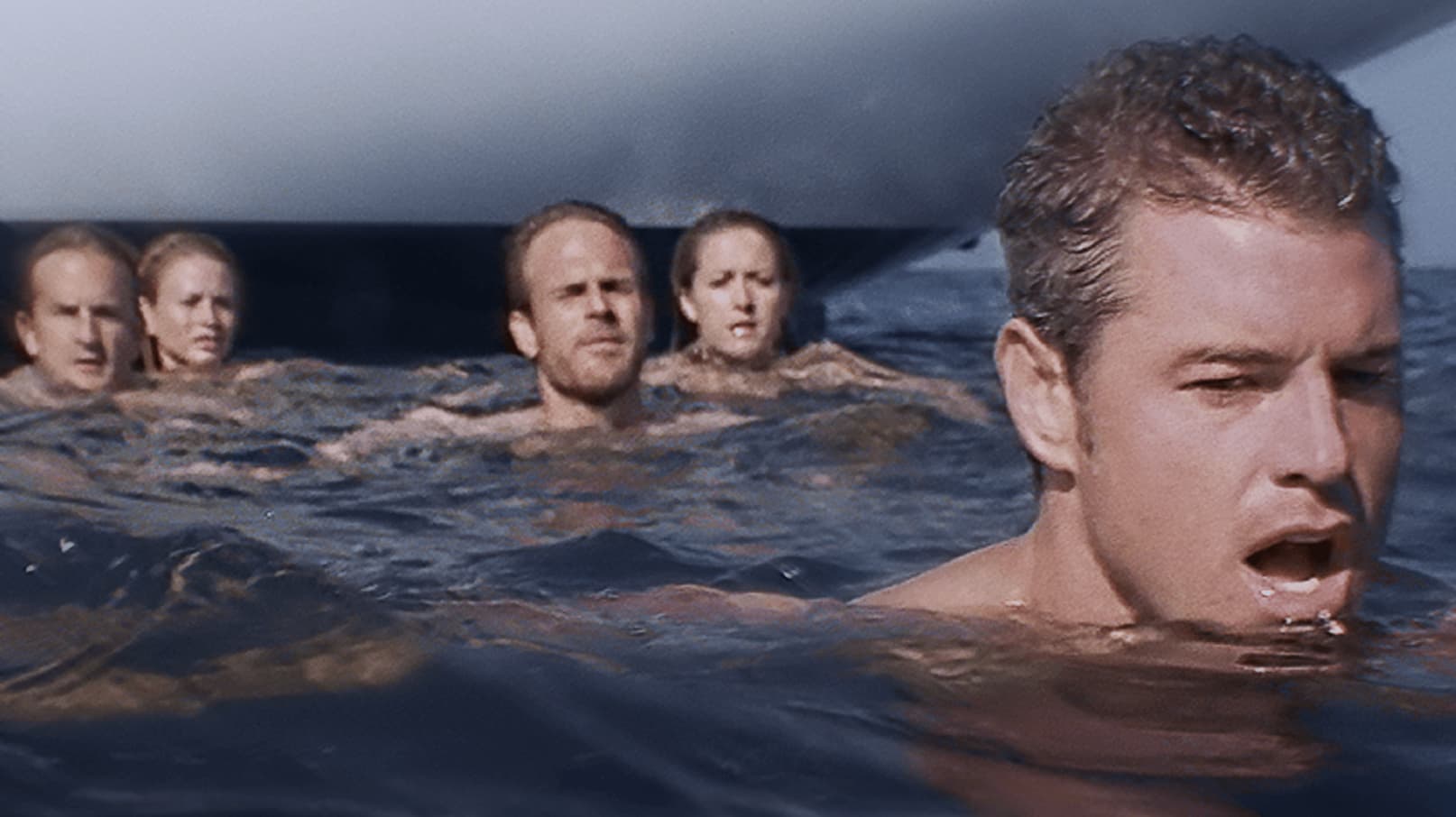 Un grupo de viejos amigos fiesteros en un yate ve cómo su diversión se convierte en pesadilla al nadar y olvidar colocar la escalera.