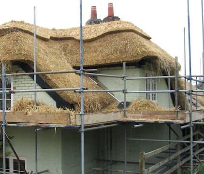 In Worcester the Beavan's detached kitchen is getting re thatched after a 400 year wait. In Wiltshire Marianne is making bricks the old fashioned way when she helps to patch and repair an 18th century cob wall. And in Herefordshire one of the oldest metals known to man is being used to protect this medieval castle tower from the rain.