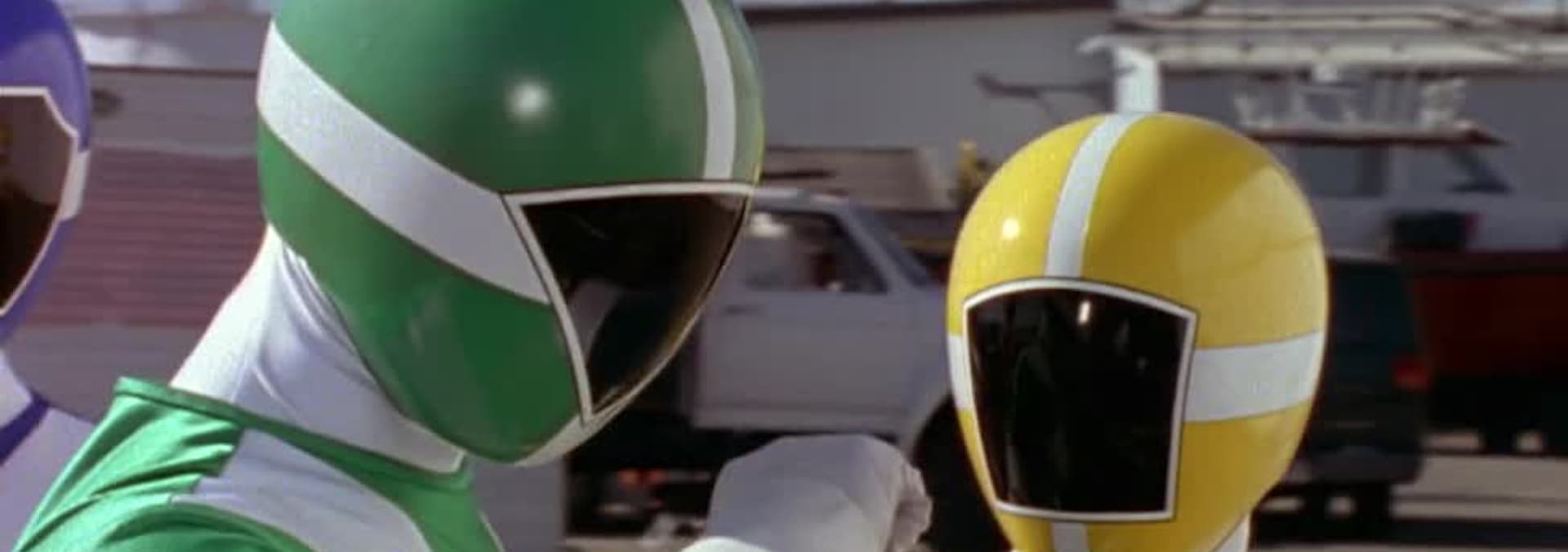 The mysterious Titanium Ranger attacks the Power Rangers.