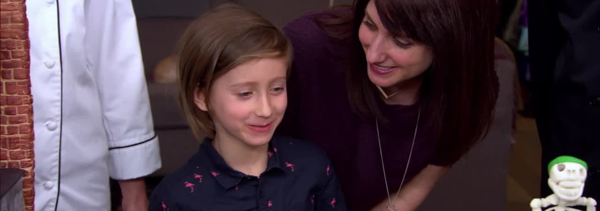 Stacey�s son, Weston, is a second grader who loves skateboarding more than anything. With Weston�s high-flying skateboarding skeleton cake design in hand, two top cake designers, Damion and Genevieve, must try their best to fulfill his cake wish-list for his upcoming 7th birthday. But, only one skeleton creation will �alley-oop�, while the other will �bail�.