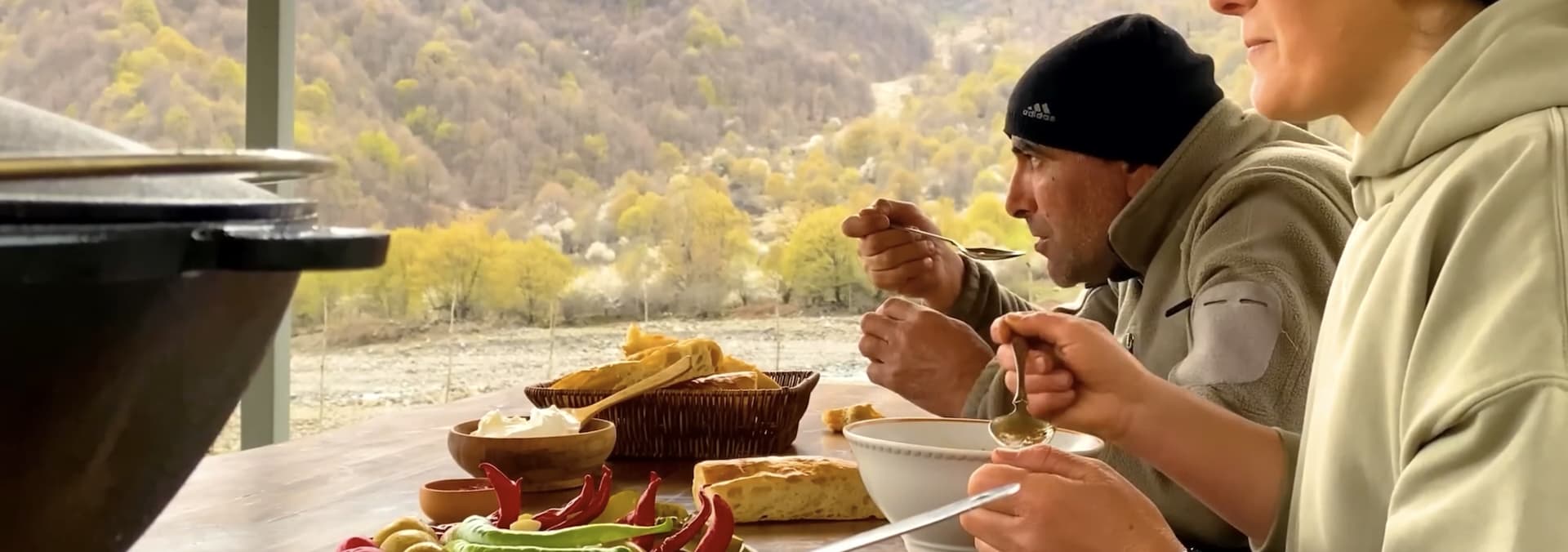 We’re sharing our special Ukrainian Borscht, cooked slowly in a hearty bone broth entirely over a campfire in our faraway village. Witness the seamless teamwork of our rustic lifestyle as we serve up this spectacular, vibrant feast. Take a well-deserved break from the modern world and immerse yourself in the calming, authentic rhythms of our mountain life. Grab a seat!