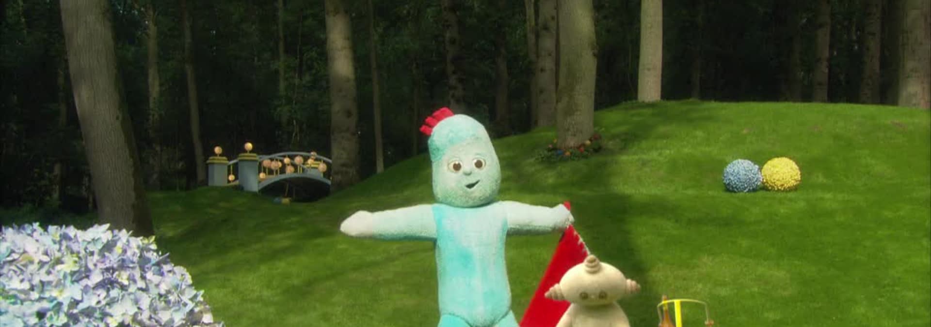 Igglepiggle is enjoying dancing in the garden. He leaves his blanket in a safe place but when he returns, it is gone. Igglepiggles blanket has landed on Makka Pakka and seems to be running about by itself.