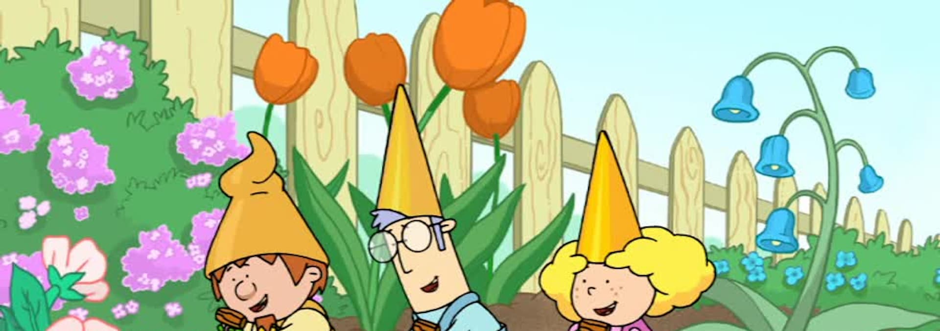 The Gnomes build scarecrows to protect their crops from hungry crows. Gordon, Percy, Jerome and Rosie all make wacky scarecrows to frighten the crows that have been eating all their crops. But nothing seems to scare these birds. It's only when Gordon takes a fresh look at the problem that the best solution is found. He creates a fantastic bird-table and supplies the crows with an alternative diet of tasty nuts and seeds from his stores. In return, the crows agree to stay away from the vegetables.