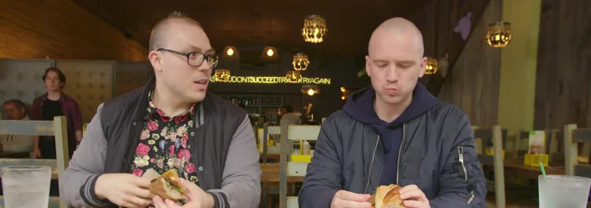 Over the years, Anthony Fantano has reviewed thousands of albums on his wildly popular YouTube channel, the Needle Drop. But today, two of the Internet's busiest bald men are joining forces like Voltron to answer the one question that really matters: Are vegan meat substitutes actually any good? Anthony, a self-professed "thicc vegan," and Sean Evans, a professional chicken wing-eater, are coming at this from two different perspectives. Will the BBQ seitan sandwich from Monk's Meats appeal to Sean's carnivorous pallet? Will the infamous Impossible Burger drive Anthony to the brink of insanity? Watch the latest episode of SITW and find out.