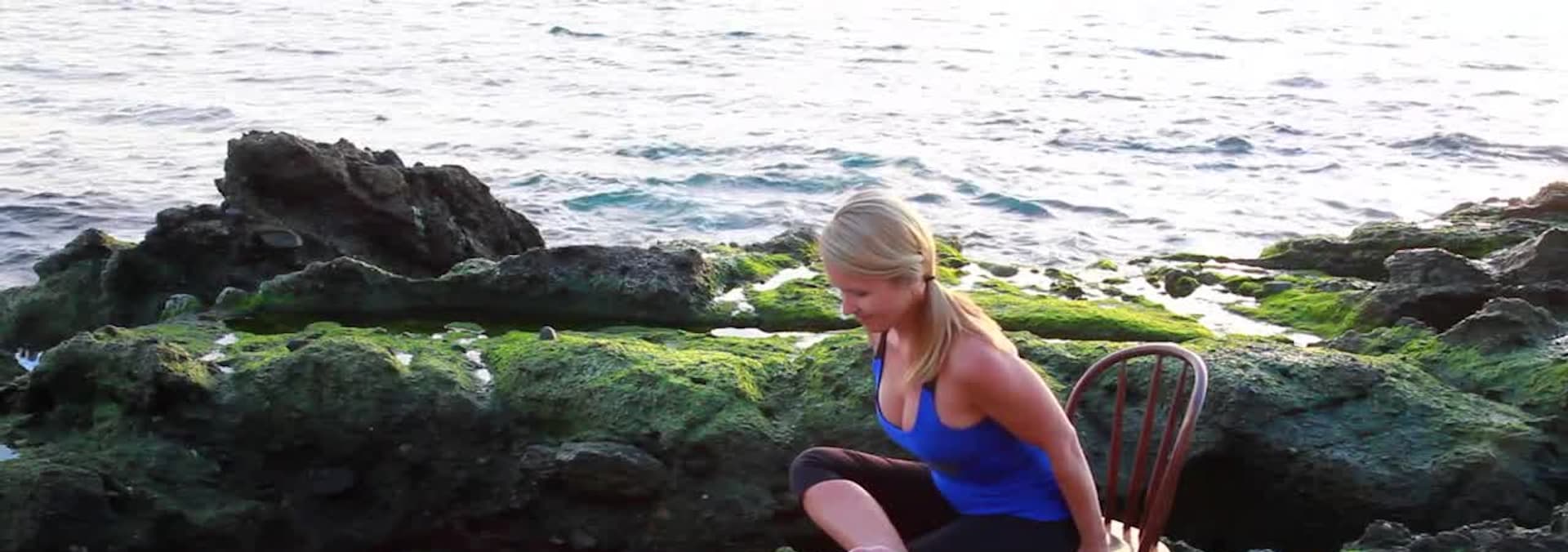Relax and rejuvenate amid the tranquil beach setting, drawing in calm, soothing energy from the ocean waves as we focus on gentle seated postures to strengthen the legs while opening the hips, combined with upper body moves to stretch the shoulders and chest using a chair for support.
