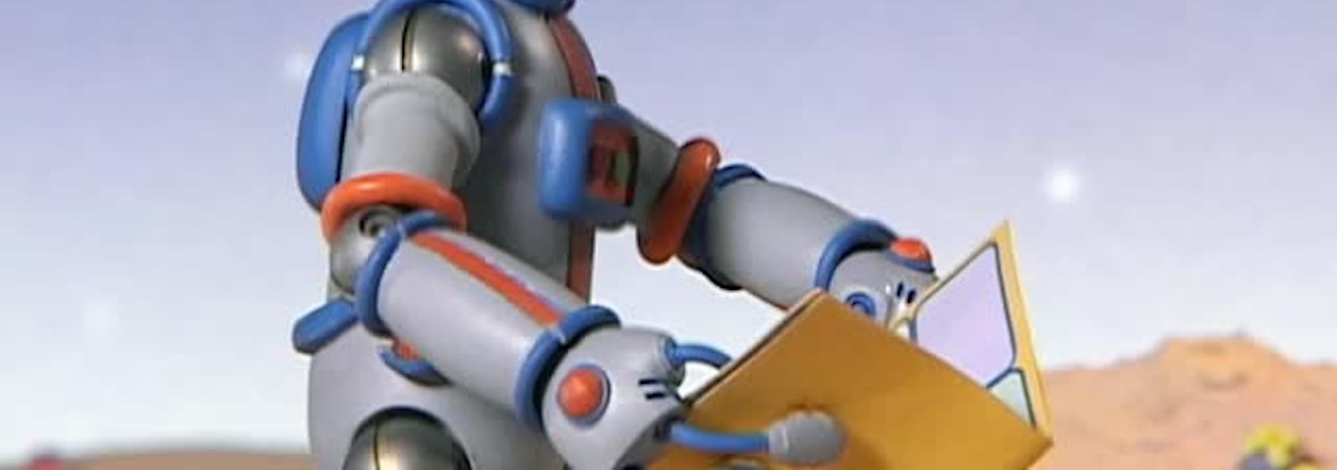 When Rover goes missing, Jim and Ted are hot on his trail and find not only the robo-pup but a fabulous lunar playground. // A lunar sand clam snaps off Rover's tail ball, leaving the poor mutt without the ability to recharge.