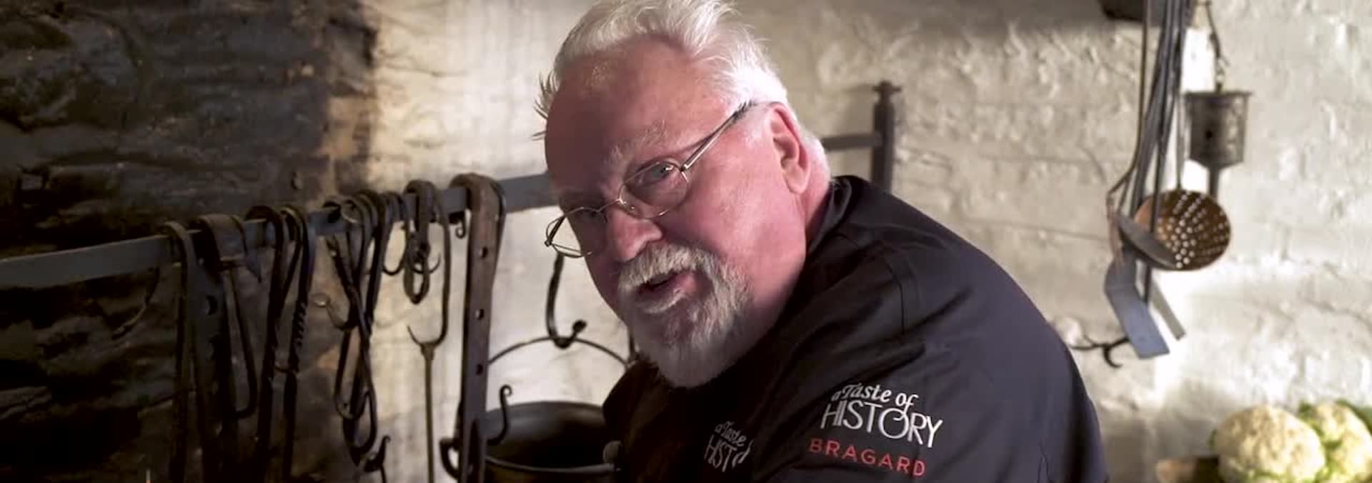 Chef Walter Staib and General George Washington brave the elements to discuss the winter of 1777 at Valley Forge. Recipes include veal kidney mushroom pie, and fried cauliflower.