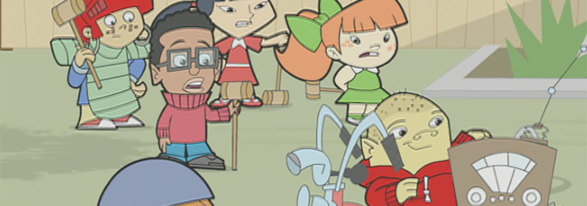 The Captain is poised to do his first promotional radio interview, on Otto's hand built transmitter. This is valuable media exposure and the Captain is somewhat nervous. He's luckily distracted by Tabitha's cursed problem! Seems her baby brother, Tucker, is learning to talk...and with a first rate potty mouth! Bleep this! Bleep that! Will the Captain teach Tucker to express himself more appropriately before he goes on air or will Tucker hi-jack the whole interview, leaving the Captain in deep bleep! / Milo’s mother buys him a new winter jacket, but it’s the middle of summer! When the bargain zipper gets stuck he’s trapped in it just as he hears a kid, in trouble! It’s Lizbeth this time! Her stuffed friend, Chester is tangled in the Dairy Monarch’s advertising balloon, and hanging above the cross-walk! Now he’ll have to contend with The Crossing Guard, and Nugget & Dijon (who he knows are really after his flamingo secrets Lizbeth shared with Chester) the Dairy Monarch’s ‘legit’ mascots. Will he be able to shed his new puffy suit in time to save Chester from all these nefarious forces? If not his relationship with Lizbeth might not ever be the same! And what about that elephant?