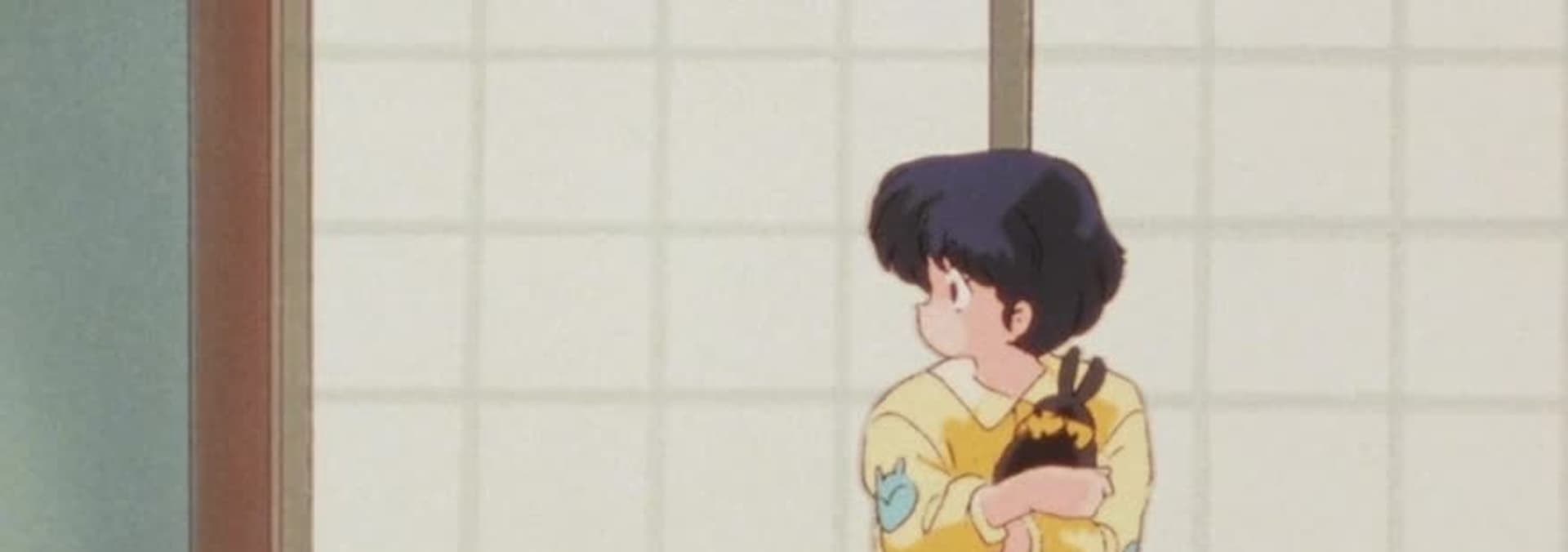 Stuck in the middle of a fight between Ranma and Ryoga, Akane's long hair is chopped off by Ryoga's bandana sword.