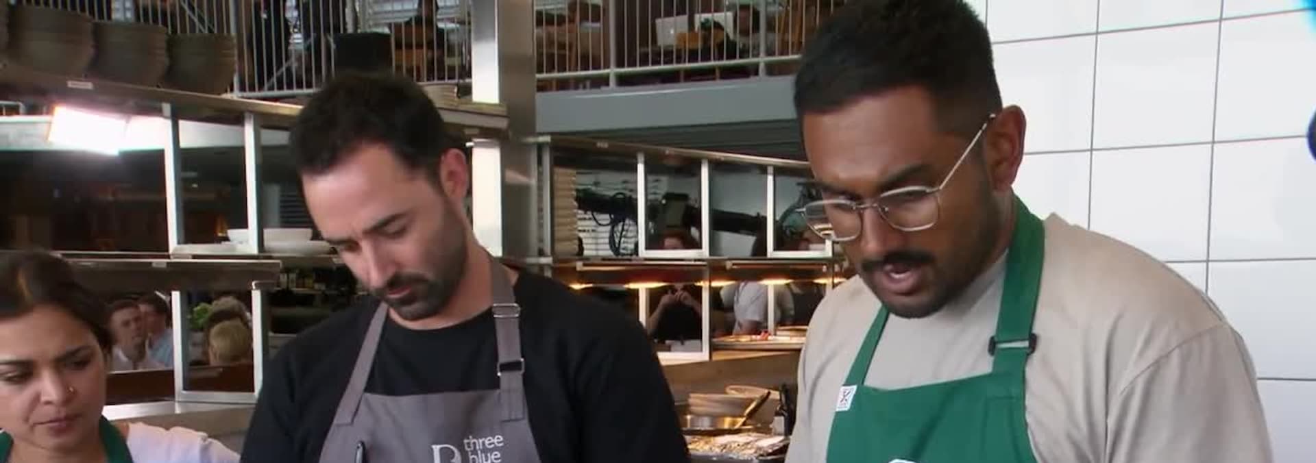 Today's service challenge takes place at Three Blue Ducks at URBNSURF Melbourne, owned by MasterChef's very own Andy Allen.