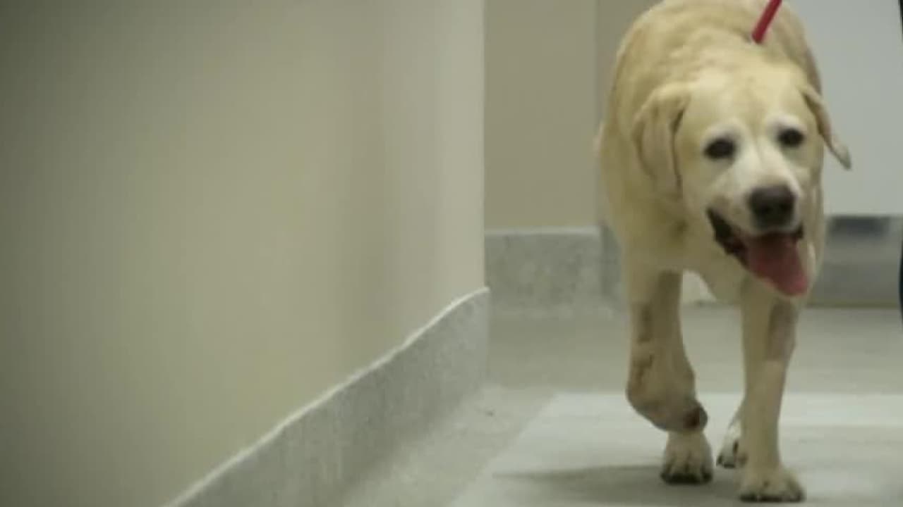 Meet Ice, the puppy with shattered leg, check in on Lottie's recovery. A sniffer dog comes in with a blown knee.
