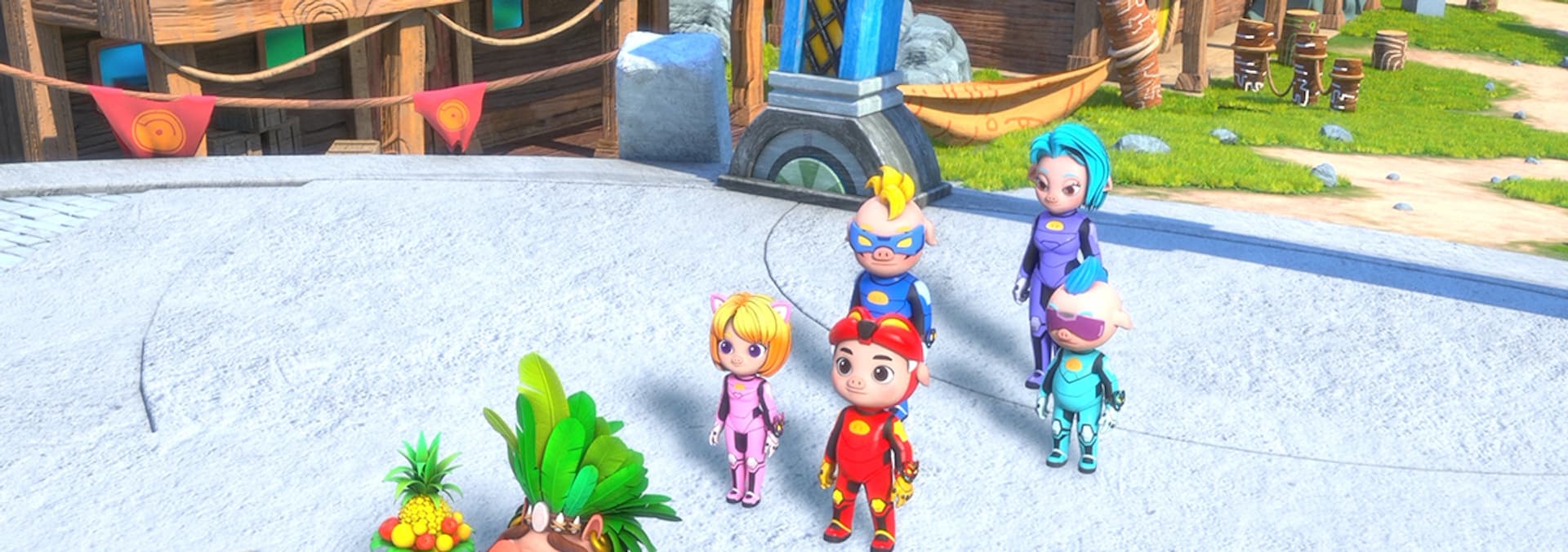 The Kung Fu Pork Choppers' pets transform into giant beasts to save The Sun City. In The Kingdom, they build a thruster, with La Puerca delivering the final boost.