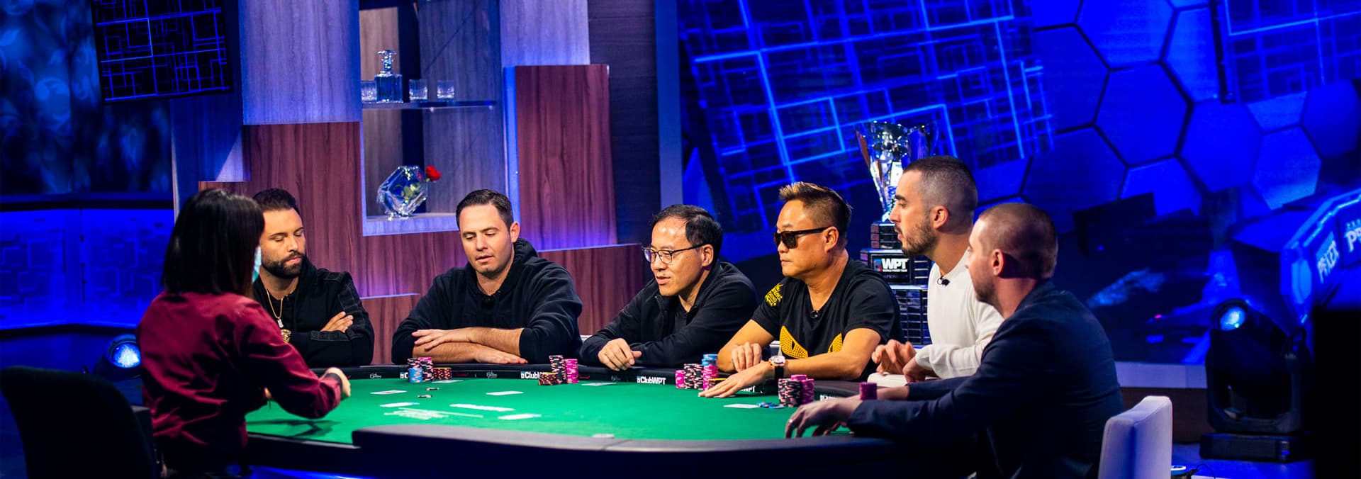 Six remaining players square off on the felt of the WPT Borgata Final Table.