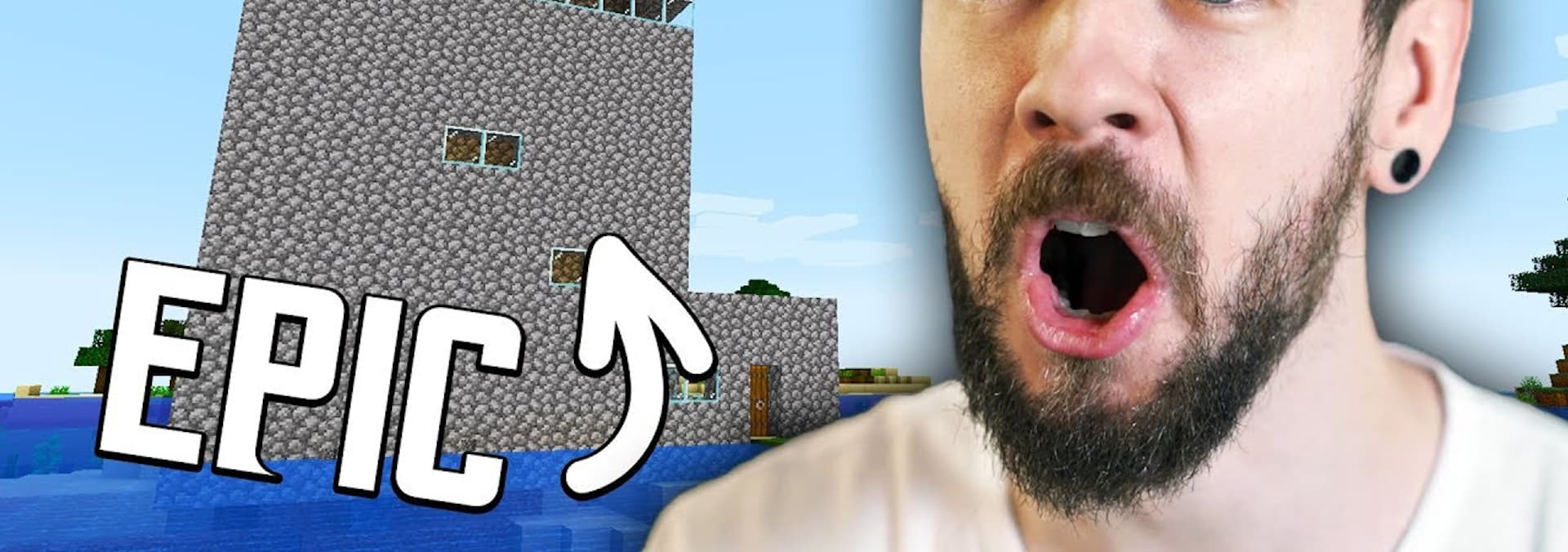Jacksepticeye builds a castle for his dog in Minecraft.