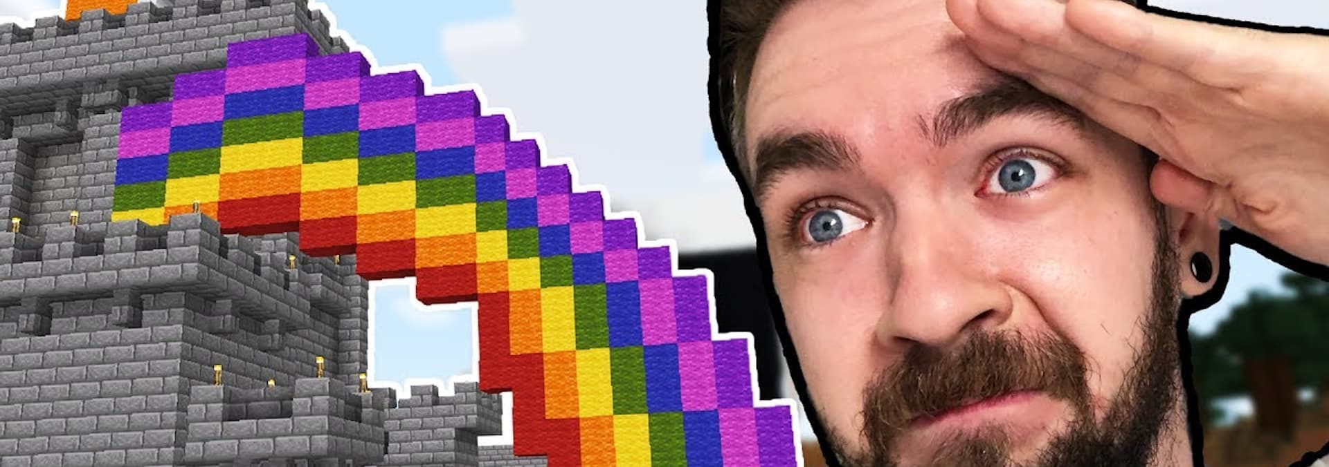 Jacksepticeye builds a rainbow and a pot of gold in Minecraft.