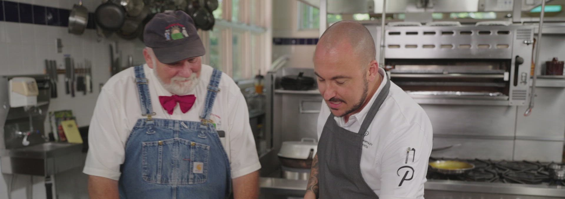 Chef Dan Perretta is back on the farm to visit his friend and longtime collaborator, Farmer Lee Jones. Chef Perretta has chosen to work with peppers, and Farmer couldn't be more pleased to head to the test kitchen, where Chef is making two dishes that highlight a variety of peppers from the fields. But he's really blowing Farmer's mind by showing that peppers don't always have to be seen as savory.