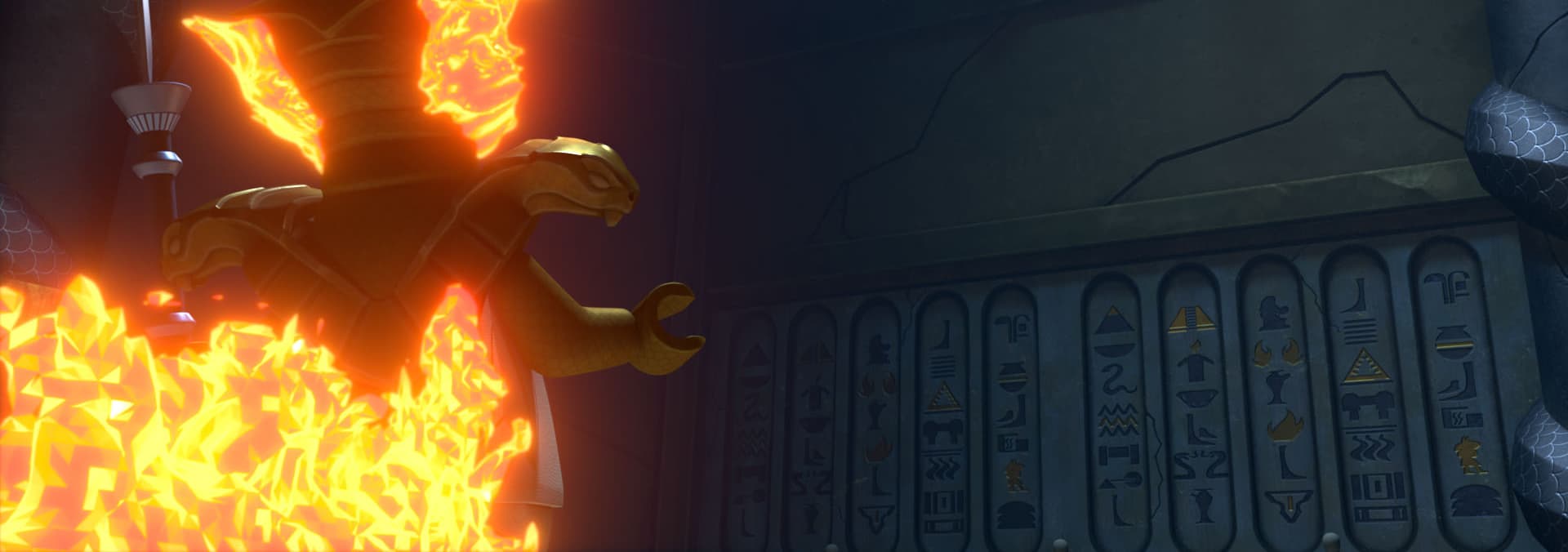 Los ninjas están atrapados en la pirámide y deben escapar de la lava incandescente para advertir a ciudad Ninjago de la invasión de serpientes