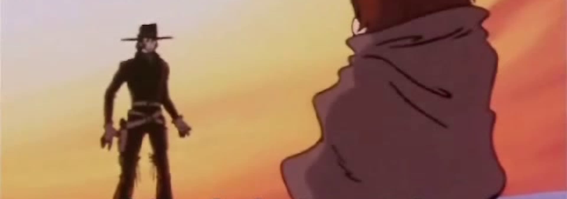 On Professional, the planet of memories, Tetsuro ignores Maetel’s advice, and makes eye contact with a professional hangman. They attempt to hang Tetsuro! He is saved by a professional gunman, only to be forced into a shooting duel!