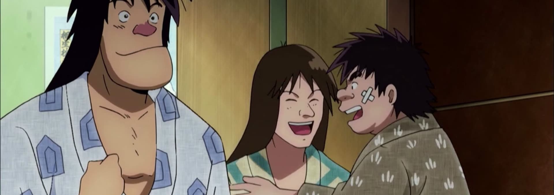 Sponsors are the financial backbone of sumo stables. Raijin stable's sponsor is the chairman of the board and administrator of a huge hospital, Ueda-sensei. Master Raijin, Inokawa and Tatsunokawa get invited to Ueda-sensei's daughter's wedding, but the two main wrestlers are in Hawaii on a sumo-tour. Master decides to take Matsutaro to the wedding instead, but ... what a dangerous decision for the master to make.